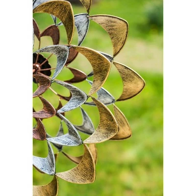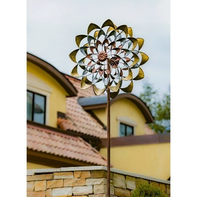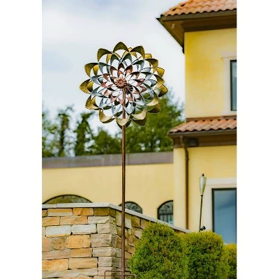 This kinetic wind spinner is copper and silver with a floral shape / design. It includes a 3 prong Stake and Pole: .87″=22mm. It’s large at: 24″W x 10.25″L x 75″ H. Watch the video to see it in motion. Assembly required. At Evergreen, we are committed to producing premium, quality products to bring a touch of color and personality to your home. We respect and celebrate the uniqueness in everyone by offering one of the world’s largest selections of home and garden decor.