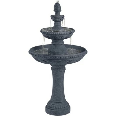 - Three levels of water. Pineapple spout accent on top. A great accent for gardens or patio areas.