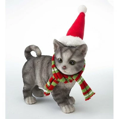 - Kitten statue comes with festive winter scarf and hat, plus a summer hat