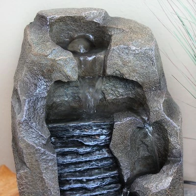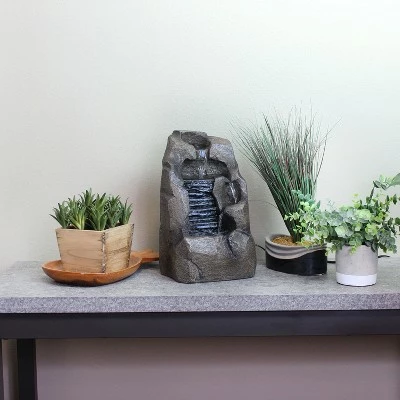 Make any personal space calm and tranquil with the Stony Rock Waterfall Indoor Tabletop Fountain from Sunnydaze Decor. Durably constructed of easy-to-maintain resin, this fountain replicates the look, color and texture of real stone. Water gently flows down from both a textured wall and rocky tiers into the basin below. This serene interior water feature is perfect for adding a little peaceful part of nature in the home or office. Plus, the included electric submersible pump makes it easy to put together with no complicated plumbing or installation required.
