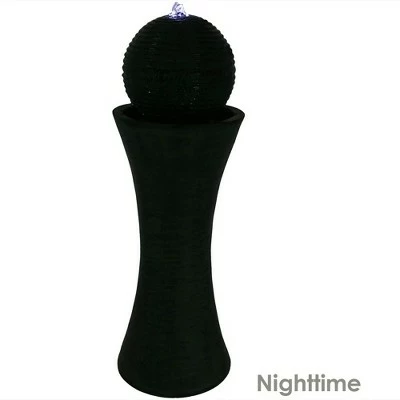 Add modern style and charn to any outdoor space with this solar-powered fountain. This contemporary water feature has the look of a stone fountain, but is made of durable and lightweight polyresin. Plus, no plumbing is required; once the feature is assembled, simply connect the cord from the pump to the solar panel and place the panel in direct sunlight. No more unsightly extension cords running across the yard and hogging those plugins; just mount and conceal the panel in a sunny place and enjoy! The solar with battery backup option allows this fountain to harness energy even when there is no sunlight. The rechargeable battery pack charges throughout the day (with or without the fountain running) so the gentle water sounds can be enjoyed in the evening as well.. Images include product in nighttime environment.