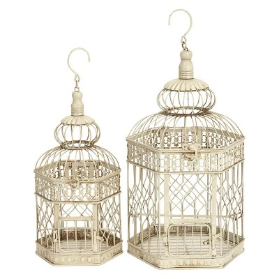 - This elegant set of decorative birdcages feature a distressed cream iron finish