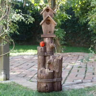 Add some rustic charm to your home and outdoor decor with the Alpine Birdhouse Fountain. Relax as you listen to the peaceful pour of water that cascades down as you enjoy a glass of lemonade on a warm sunny afternoon. Full of rustic charm, this fountain will bring a little bit of country to your indoor or outdoor decor. The attached birdhouse doesn’t just look great – it also provides a safe home for feathered friends! The realistic wood logs and branches are actually made of polyresin, fiberglass, and stone powder to prevent rotting, rusting, and damage from the weather. Small details such as the tied rope and red cardinal add to the quality of this magnificent piece. To use, simply plug in to an outdoor outlet, fill upper level with water, and watch as the interior pump creates a lovely water flow. With a 1-year warranty, you can be confident in the quality of your purchase. Fountain measures 11″L x 10″W x 35″H for use in yards of any size.