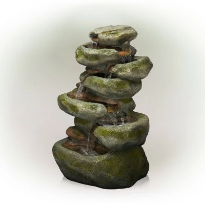 - VERSATILE GARDEN DÉCOR WITH LED LIGHTS: Contemporary cascading water fountain with natural look and LED lights will provide a tranquil and soothing addition to your indoor or outdoor living space