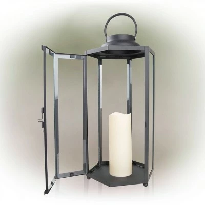 “Add contemporary style to your yard with the 18″” tall Outdoor Battery-Operated Lantern with LED Lights from Alpine Corporation. This lighted home decorative piece features 3 impressive candle LED lights from each simulated flame bulb. Itβs powered by 2 AA batteries to offer your guests a warm welcome. The timer function allows you to automatically turn-off the light after 6 hours of use once the parameter is set and 18 hours of sleep before it lights up again. This lovely antique finish lantern is constructed from durable plastic and glass. Toughly made for long-lasting quality use in your yard, garden, porch, veranda, or any indoor and outdoor space. Add one or multiple lanterns to create an enchanted home decor display. This unique lamp is perfect for display in entryways, courtyards, other outdoor living spaces, and inside your home. The decorative garden dΓ©cor measures 9″”L x 9″”W x 18″”H and 21″” while hanging to fit almost any indoor or outdoor space, and includes a one-year manufacturer’s warranty from the date of purchase.