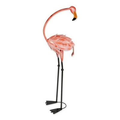 - Brighten your favorite space with a luscious touch of the tropics. These life-sized metal flamingo sculptures make a colorful splash that’s a pure delight.
